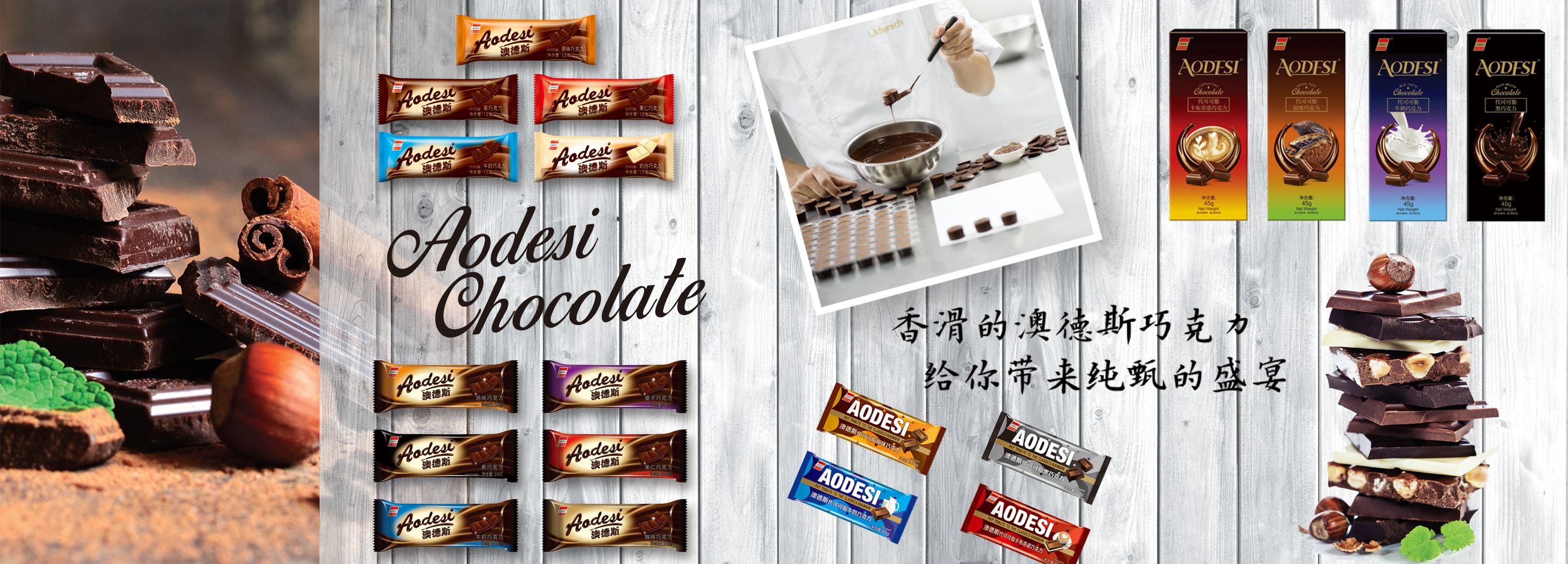 澳德斯巧克力制品系列本企具備國(guó)內(nèi)外先進(jìn)的、具有先進(jìn)水平的生產(chǎn)流水線幾十條,為我國(guó)技術(shù)先進(jìn)的食品企業(yè)。主要生產(chǎn):巧克力、糖果、咖啡、咖啡口嚼片、無(wú)糖薄荷糖、非油炸膨化食品等品種。 ...
